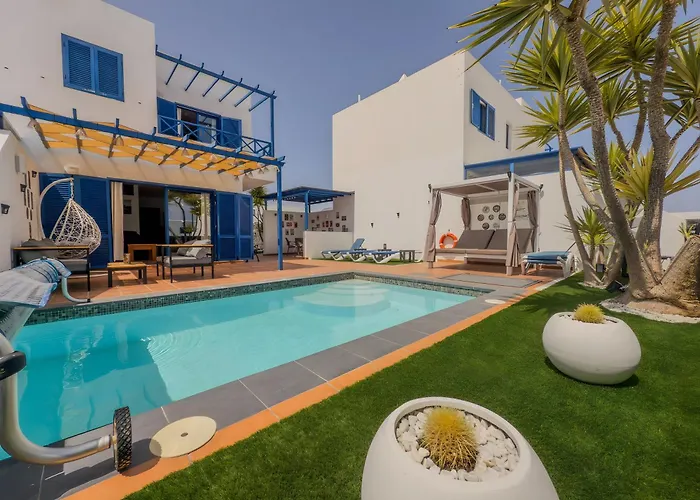 Du kommer att bo ungefär 7 minuters gångavstånd från Marina Rubicon och nära Castillo de las Coloradas. Villan med 2 badrum ligger cirka 10 minuter med bil från Aqualava Waterpark.
